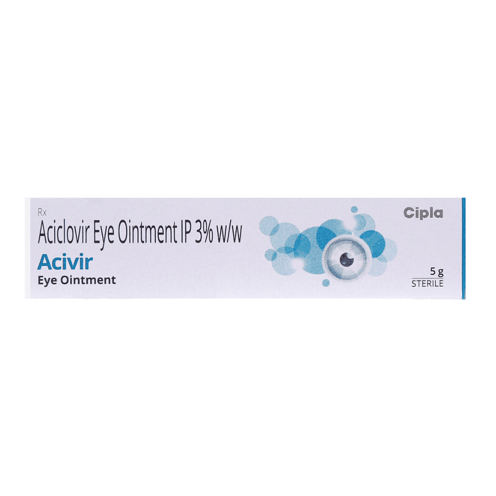 Acivir Eye Ointment (Acyclovir 3%) is an antiviral ophthalmic formulation used to treat herpes simplex virus infections of the eye, such as herpetic keratitis. It helps reduce viral replication in the eye, alleviates discomfort, and promotes faster healing. The ointment is applied directly to the lower eyelid, delivering concentrated antiviral action to the affected area.