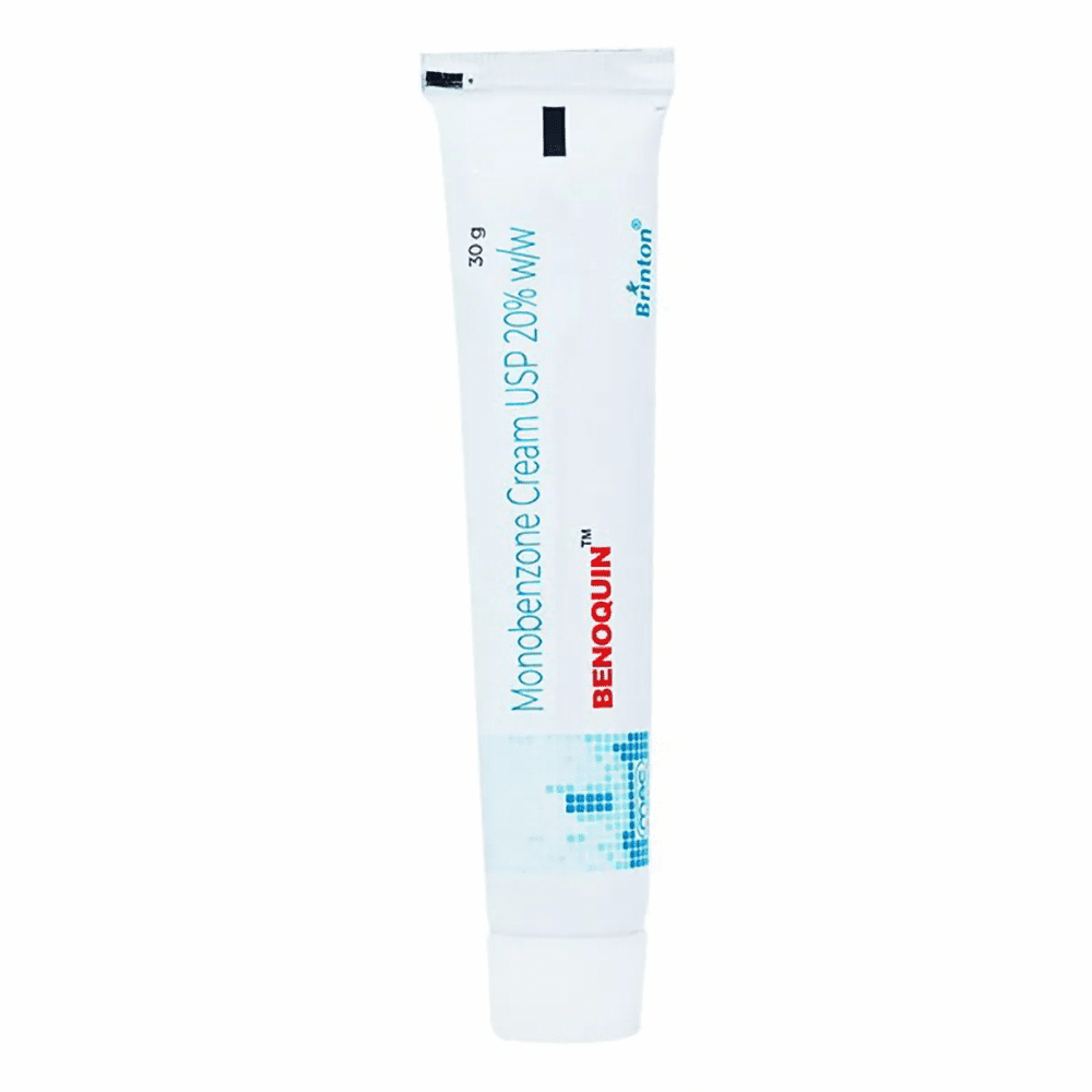 Benoquin Cream delivers 20% monobenzone, a powerful topical depigmenting agent used for treating vitiligo and stable hyperpigmented patches. It acts by permanently lightening unaffected skin to match depigmented areas. Strictly for clinical use or specialist-supervised home care. Requires careful protocol adherence, patch testing, and long-term sun protection due to irreversible pigment alteration.