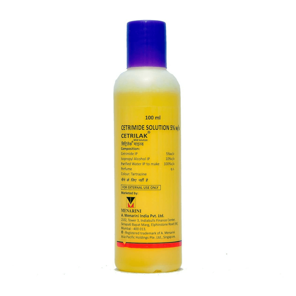 Cetrilak Mild Solution contains 5% cetrimide in an alcohol-water base—an antiseptic solution for external skin use. It’s formulated to cleanse and decontaminate small wounds, superficial burns, insect bites, rashes, and mild scalp irritation. When diluted and used as directed, it helps prevent bacterial and fungal growth while drying quickly and leaving minimal residue. Safe for general first-aid and home-care use under proper guidance.