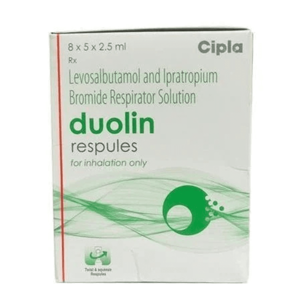 Duolin Respules are sterile, single-use ampoules containing a combination of levosalbutamol (a short-acting β₂-agonist) and ipratropium bromide (an anticholinergic agent). Designed for use with nebulizer machines, these respules provide fast and effective airway relief by easing bronchoconstriction and improving airflow in individuals with asthma or COPD.