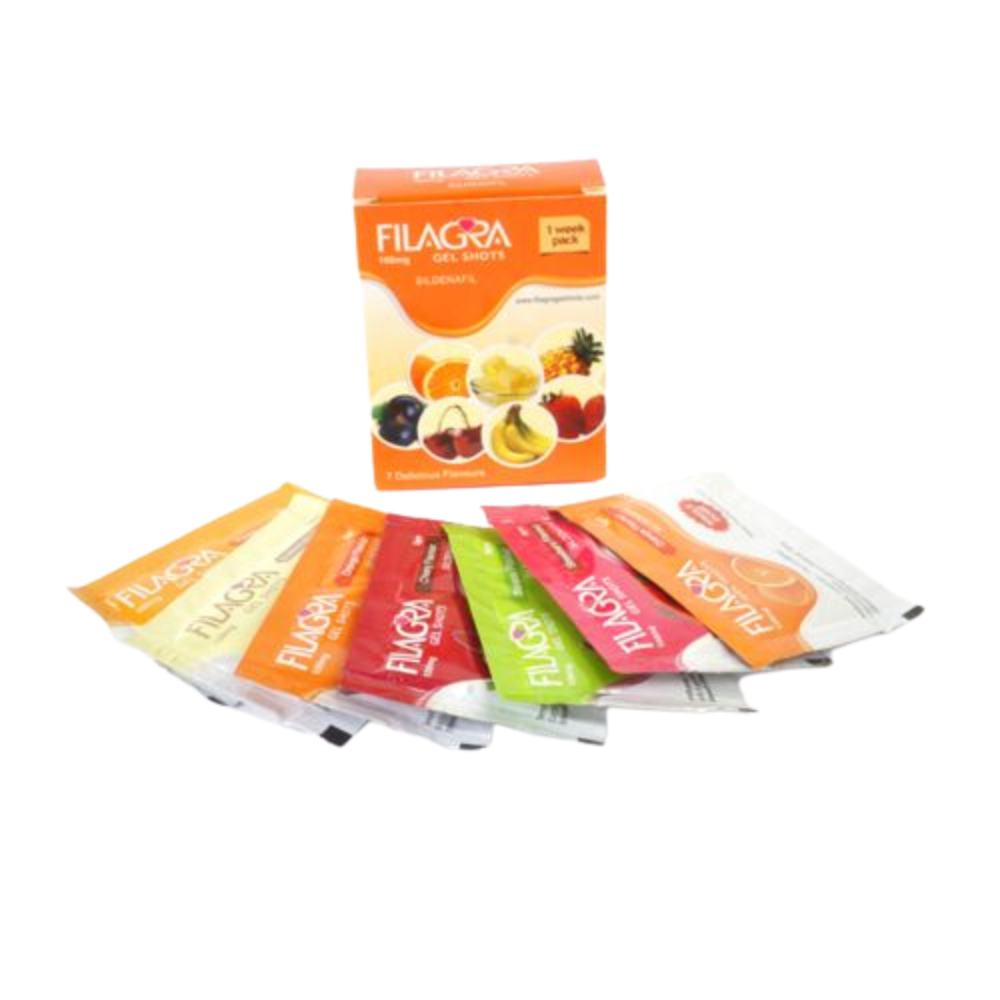 Filagra Oral Jelly is a flavored sildenafil citrate gel in a convenient sachet, designed for rapid and discreet erectile dysfunction relief. The jelly dissolves under the tongue or inside the cheek without water, offering effects within 15–30 minutes to support firm, lasting erections.