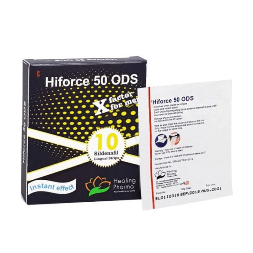 HiForce 50 ODS is a fast-acting, orodispersible sildenafil strip designed for men seeking rapid and discreet erectile dysfunction treatment. This innovative tablet dissolves on the tongue, allowing quick absorption and effectiveness in about 15–30 minutes—no water needed. Perfect for spontaneous moments and partnered intimacy.