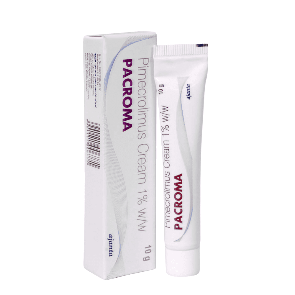 Pacroma Cream features 1% pimecrolimus, a non-steroidal topical immunomodulator designed for managing mild-to-moderate atopic dermatitis (eczema) and similar inflammatory skin conditions. It works by modulating the immune response in the skin to reduce itching, redness, and flare-ups. Ideal for sensitive areas—including face, neck, and skin folds—Pacroma Cream is safe for long-term intermittent use when applied under medical guidance.