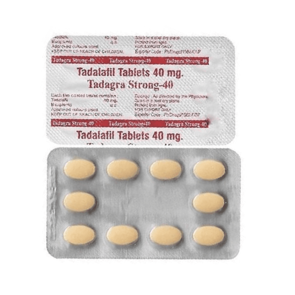 Tadagra Strong 40 mg features a high-strength dose of tadalafil designed to treat erectile dysfunction with potent and long-lasting effects. This tablet enhances blood flow to the penis, helping achieve and maintain firm erections. Typically effective within 30–60 minutes, the effects can last up to 36 hours, offering flexibility, spontaneity, and confidence.