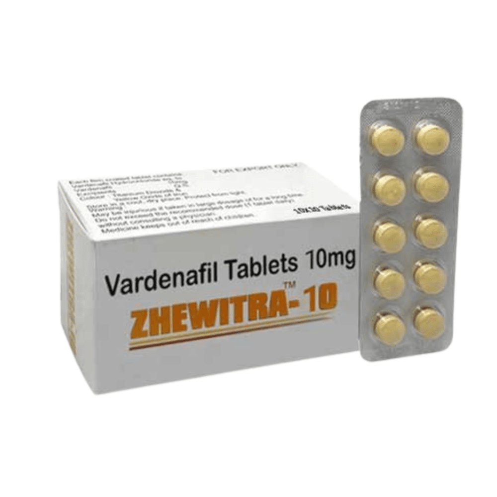 Zhewitra 10 mg contains vardenafil, a PDE‑5 inhibitor that enhances blood flow to help achieve and maintain firm erections. It typically takes effect within 30–60 minutes and can remain active for up to 5 hours, offering flexibility and confidence for planned or spontaneous sexual activity.